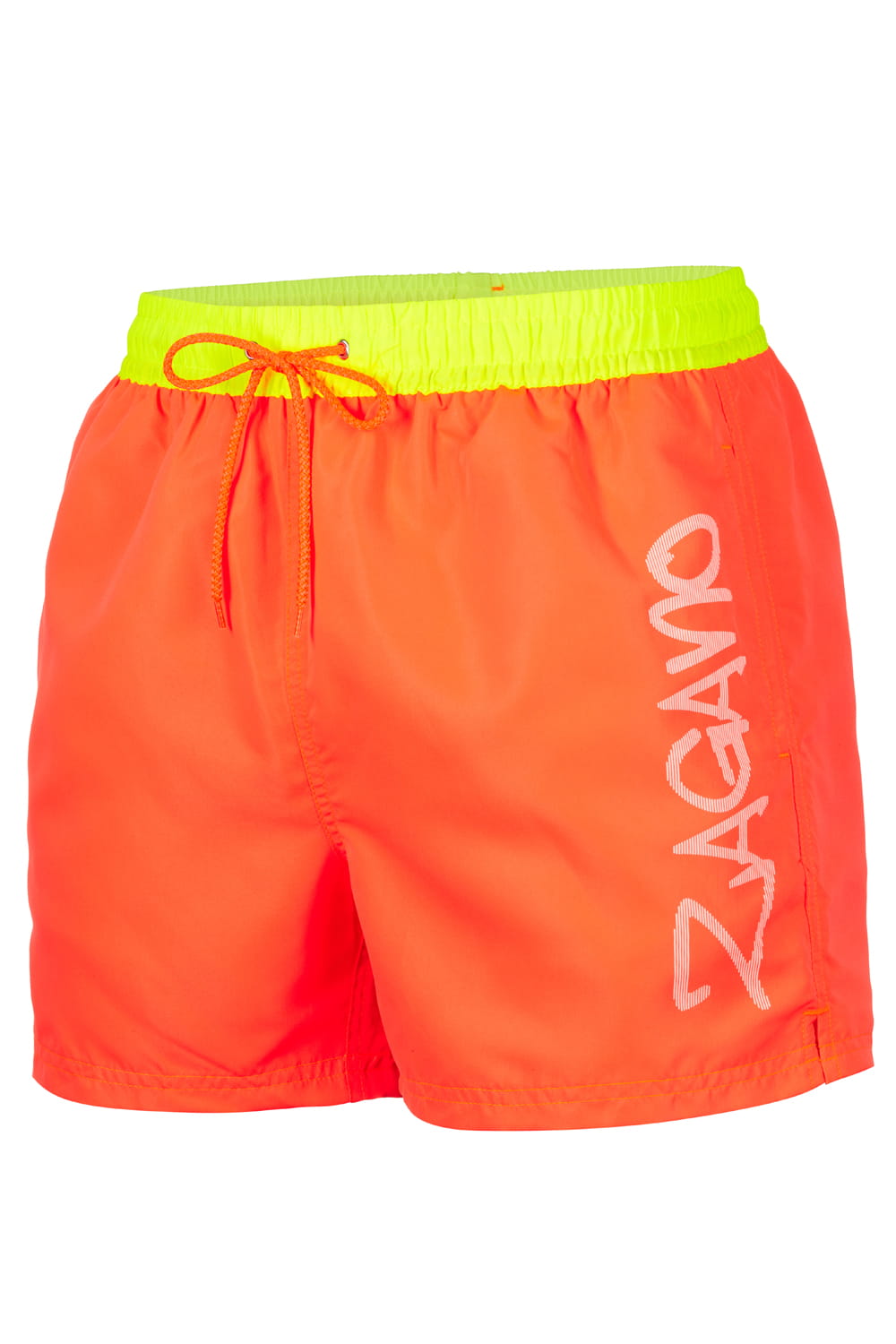 Swim shorts ideal for the beach or for sports and swimming. With a mesh lining, they are very comfortable to use. They are made of fluorescent polyester, and an additional element is a visible logo in the form of screen printing.